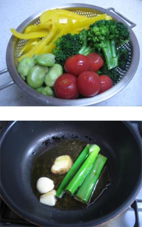 3.別のフライパンに香味油の材料を入れて弱火で煮立たせ、香りがついたら、(2)と手早く混ぜて出来上がりです。
